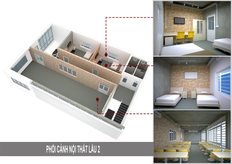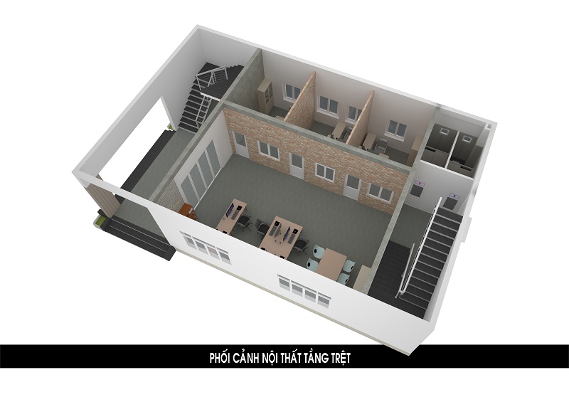 Quy mô: 01 trệt + 02 lầu + Sân thượng