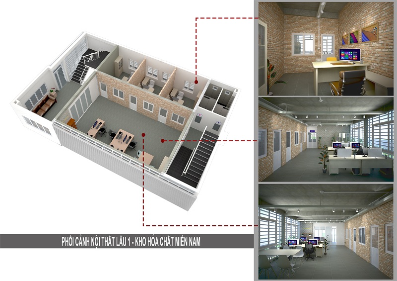 Công trình Nhà kho, xưởng kết hợp văn phòng làm việc (Công ty Hòa Bình nhận tổng thầu thiết kế và thi công)